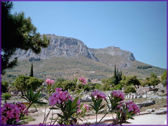 De Akrokorint - hier moest Sisyphos zijn zware kei naar boven duwen, die eens boven weer naar beneden viel; (sisyphus-arbeid)